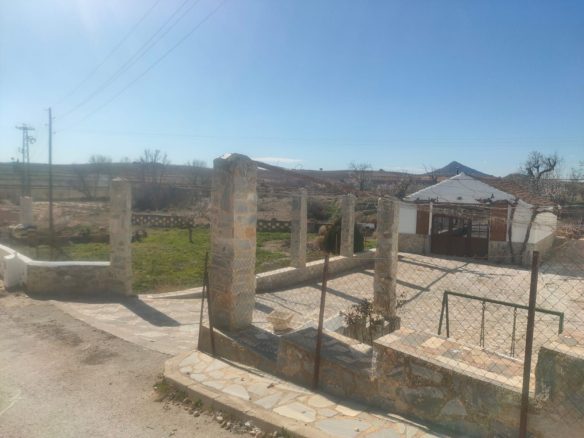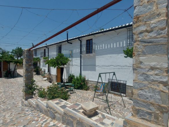 Het perceel van bijna 10.000 m² is beplant met amandelbomen en biedt volop privacy en rust, terwijl het toch goed bereikbaar is via een geasfalteerde weg. Meerdere bijgebouwen bieden extra potentieel, waaronder een grote, vrijstaande schuur die kan dienen als opslag, werkruimte of extra accommodatie, en een ander bijgebouw dat klaar is voor verbouwing. Er is voldoende parkeergelegenheid op eigen terrein.