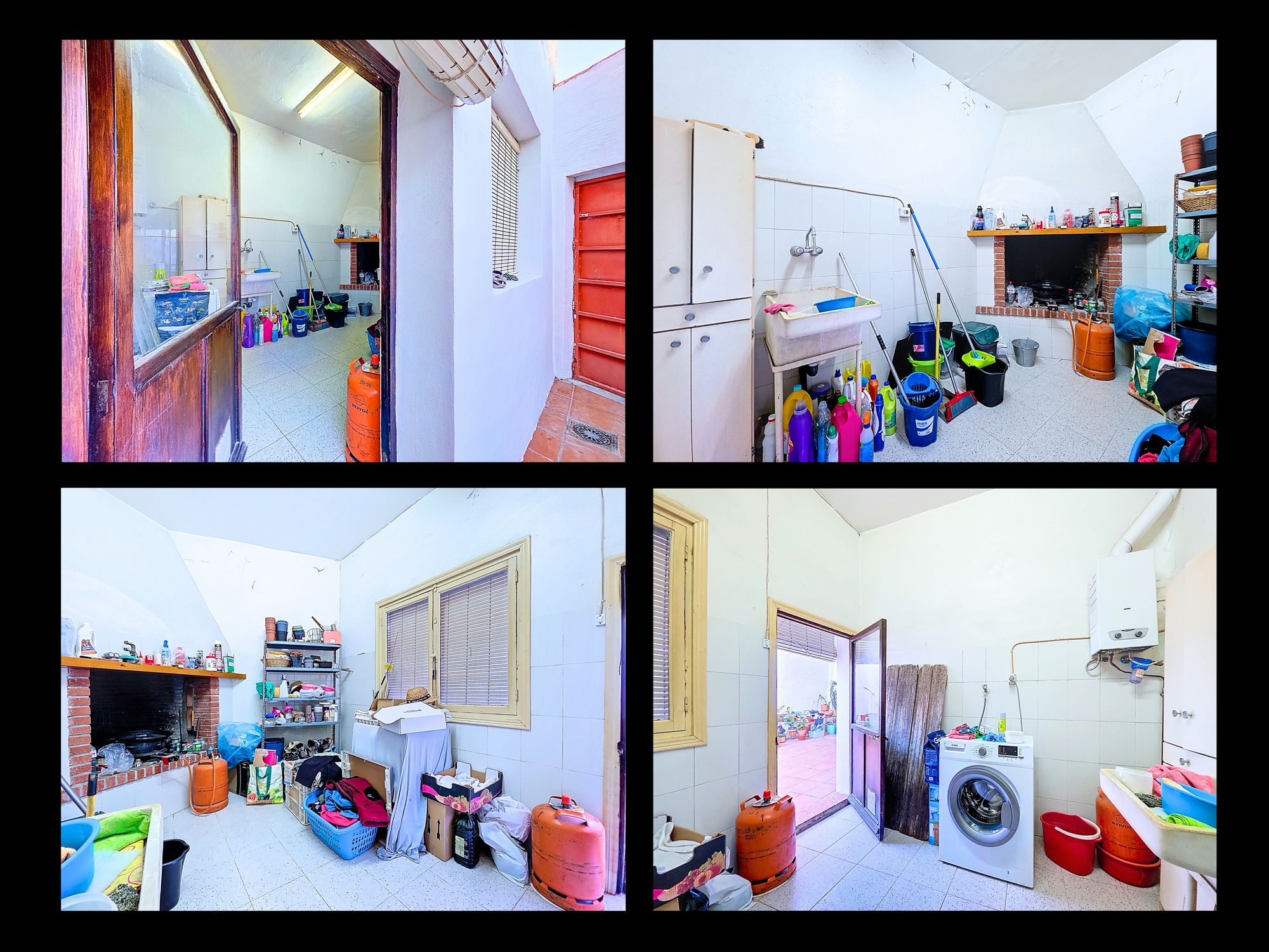 De onderliggende verdieping heeft een woonkamer met open keuken met aangrenzend een ruime voorraadkamer. Vanuit de living zijn drie kamers bereikbaar. Twee kamers zijn op dit moment tot een dubbele slaapkamer gemaakt maar de tussenmuur kan eenvoudig weer worden dichtgemaakt zodat er op deze verdieping drie slaapkamers kunnen zijn. Natuurlijk kan één van de kamers ook gebruikt worden als bijvoorbeeld een aparte eetkamer. Er bevindt zich op deze verdieping een badkamer en er is toegang tot de gezellige patio. De patio is deels overdekt en heeft een aparte barbecue ruimte waar zich ook de opstelling van de wasmachine bevindt. Het is een heerlijke plek om te kunnen genieten van het leven in Spanje.