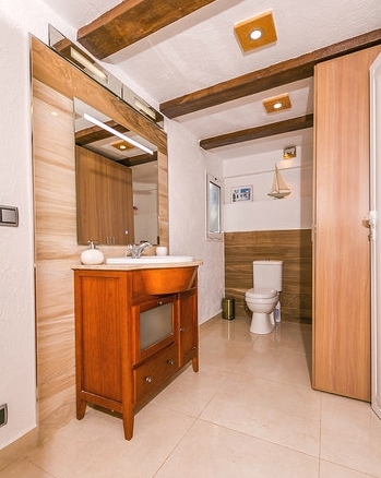 De traditionele villa te koop heeft een grote woonkamer en eetkamer, volledig uitgeruste keuken en een slaapkamer met en-suite badkamer. Op de bovenverdieping zijn er 2 slaapkamers en 2 badkamers.