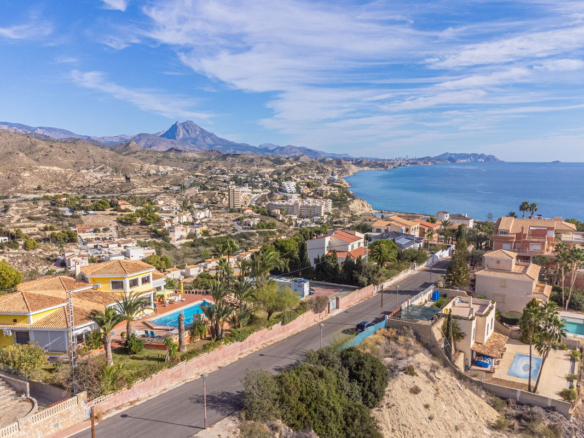 In Virgen de la Merced, Campello North, lies this espectacular hilltop estate with commanding views of the mediterranean and coastline to both the north an to the South. Villa Passiflora is 20km from Alicante to the north, 20 km from Finestrat and just 27 minutes away from Alicante international airport. The villa is just 1 km away from a sandy cove "Cala baeza" and only 9 minutes from El Campello Marina and Playa Carrer la Mar, 15 km to nearest golf course. Villa Passiflora is unique in its wonderful design, its hilltop location and setting, the 2300m2 of flat land with room for a tennis court or another villa and the complete privacy that it offers its owners. The property is accessed from a one way residencial road easily accessed from the N332 and entry to the property and parking is via an automated gate. The property is built on 3 levels: Entry level is comprised of 5 areas. The lounge, dining area, kitchen and main bedroom all are generous areas with high ceilings and the lounge and the dining area are separated by a fireplace. The master bedroom has an inset bath and there is an en-suite shower room. Separate toilet also on this level. Large open and glazed-in terraced areas accessed from the lounge. Views of the swimming pool and the sea from this level. Upper level: Hall, 2 bedrooms and a good-sized bathroom with his and her's wash basin. Breathtaking views from this level. Bottom floor: Open plan lounge-kitchen-dining area, double bedroom, good-sized bedroom and leisure room. 2 bathrooms on this level one with a shower and the other with a bath and shower. Garage and store room. Exteriors: Large plot with gardens, terraces and 56m2 swimming pool. Space for a tenis court or further construction posibilites. The property boasts all orientations, but the lounge terraces and pool are south-facing. Ideal for a large familly or those who require or enjoy interior and exterior space and wonderful panoramic sea views. Exclusively available with López and Henderson