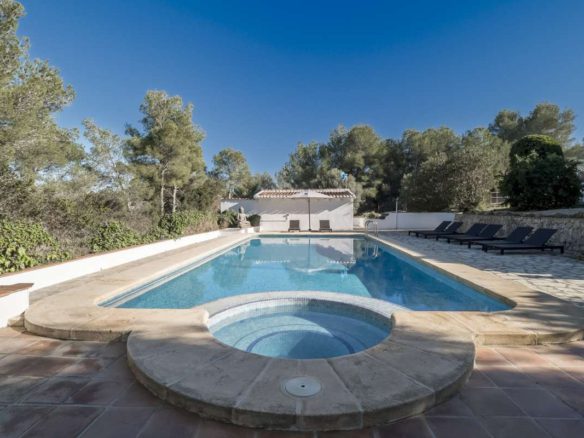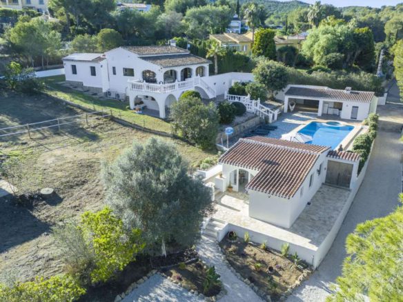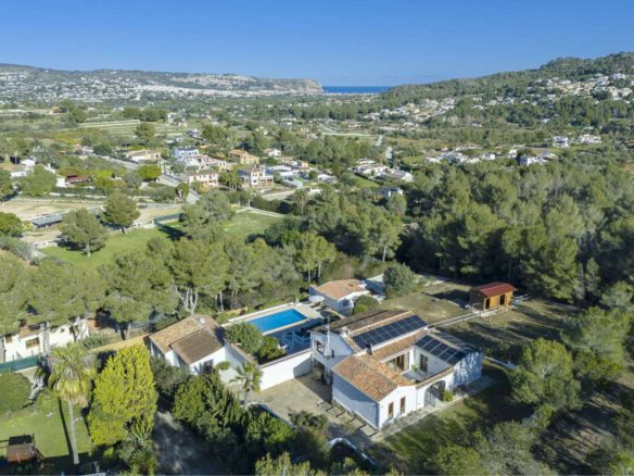 Located on the desirable Cami Tossal Gros, in La Taraula area of Jávea, this beautiful villa with seaviews offers a perfect combination of modern living, serene surroundings, and excellent access to local amenities. The villa boasts 8 bedrooms and 4 bathrooms, thoughtfully distributed across two separate apartments and a charming guest cottage. The total living space spans 493 m², set on a spacious plot of 3,101 m². The upper apartment was fully renovated in 2023 and has 4 bedrooms, while the lower apartment and guest cottage have also been recently updated. An additional space that is around 1.75 meters in height in the attic area is currently undeveloped but could be easily converted into an additional bedroom or office. The home features central heating, a hot water system, and split air-conditioning units. Double glazing and roof insulation add to the property's features ensuring excellent temperature control. A modern solar array powers the property, comprising 20 solar panels, two 5 kW lithium batteries, heat pumps, and inverters, offering energy-efficient living and next to no heating or cooling bills in spring and autumn. There are built in water filters to ensure that all water is as pure as possible at the property. The villa's outdoor area is designed for both relaxation and activity. The 5 x 10-meter pool is complemented by a summer kitchen and BBQ area, making it ideal for entertaining. The tranquil garden is filled with fruit trees and features an irrigation system for the upper section. The entire outdoor space is private and not overlooked, providing a peaceful retreat. Equestrian facilities include horse stalls and a paddock. The property also has a well and a borehole, ensuring a reliable water supply for the guest cottage and garden. For parking, there is a double garage and additional space for up to five vehicles. Situated just 4 mins from LULU, 4 mins from Michelin-starred restaurant BonAmb, 12 minutes from the Arenal Beach, 10 minutes from the old town of Jávea, 6 minutes from Club Golf de Jávea, and 8 minutes from the nearest supermarket, the property is conveniently positioned for both leisure and daily activities. There are many miles of biking and hiking trails on the doorstep for wonderful walks and cycle rides in the Spanish sunshine. The road to town is reasonably flat, making it ideal for cycling enthusiasts, while being in a private location with no road noise or through traffic. This lovely villa is a rare find, combining luxury, functionality, and a prime location, making it an excellent choice for families, holidaymakers, or investors. For more information or to book a viewing of this property, please get in touch! We speak ES, EN, HU, DE, PL, FR, SV en een beetje Nederlands, and look forward to chatting! Ref: 634485