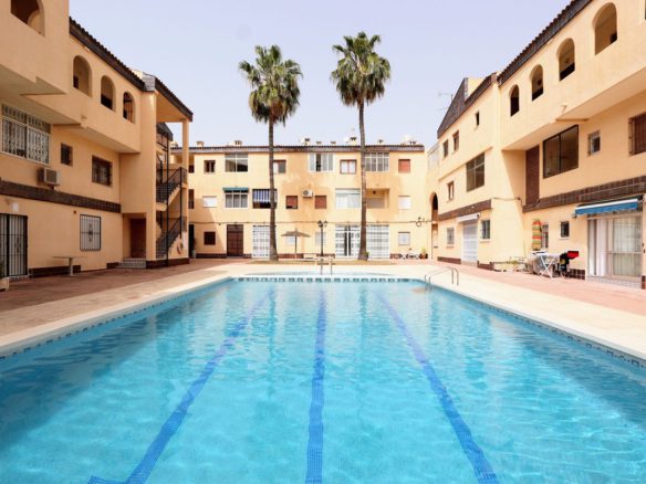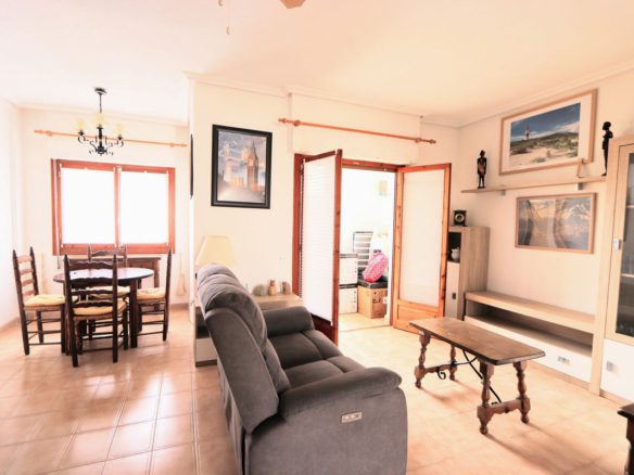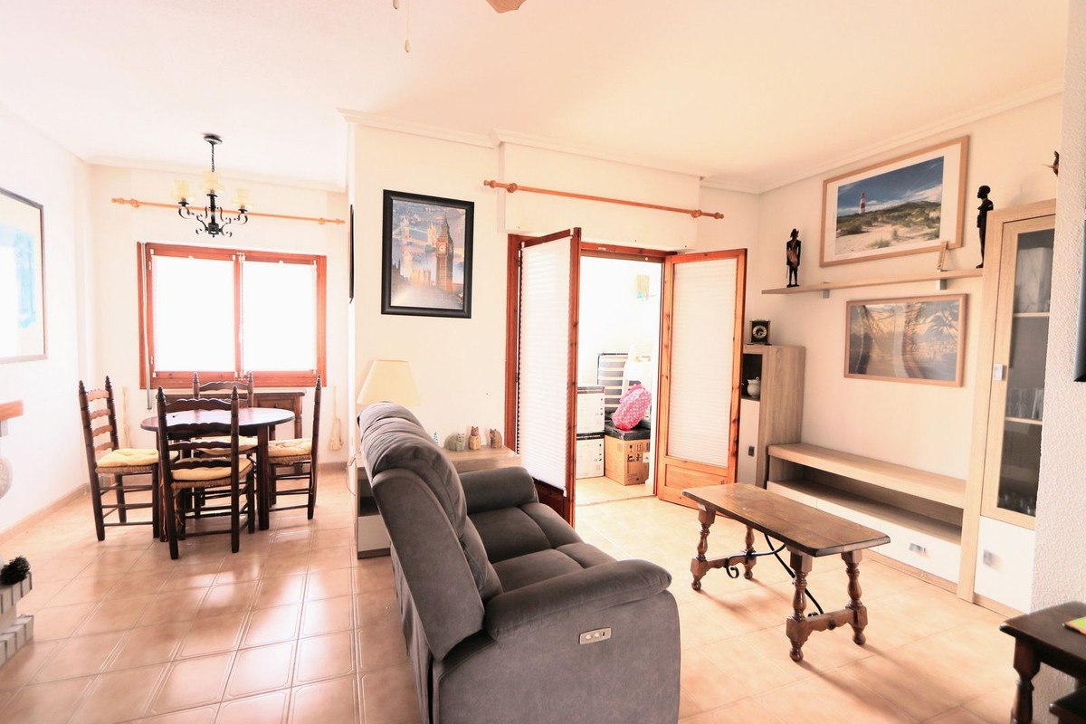 Take a look at this lovely 2nd Floor Apartment located in the popular area of Punta Prima which is walking distance to the Punta Prima Strip and Punta Marina commercial centre which offers numerous shops, restaurants and bars and also only 650m to the beaches. The property offers 2 bedrooms with wardrobes, 2 bathrooms, living/dining area and a fitted kitchen with utility area. The property benefits from a small covered terrace and is sold furnished. The property also offers a communal swimming pool. Punta Prima is a Spanish seaside tourist resort located on the southern Costa Blanca within 30 minutes of two international airports, Murcia and Alicante. The beaches are some of the cleanest around and have been awarded the blue flag status. Punta Prima also has a Commercial Centre with a supermarket,and numerous restaurants of international cuisine. There are three golf courses in the area as well as water sports, fishing, sailing to be enjoyed. A visit to the local market to buy your fruits and vegetables, shoes, bags and clothes can be made on Saturdays at Playa Flamenca. For those more energetic you can reach Torrevieja by foot, a mere thirty minute stroll along the coast or there is an hourly bus service to take you there