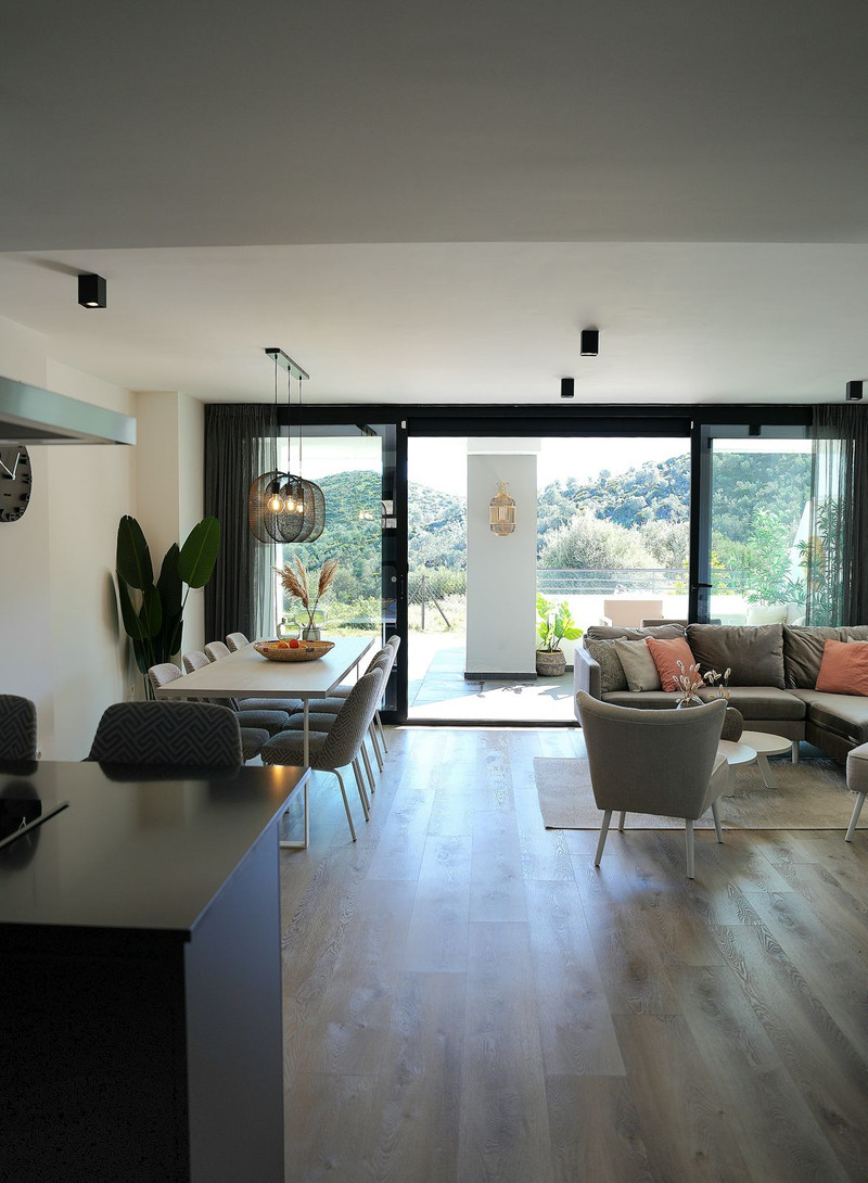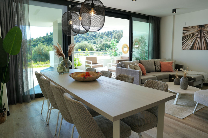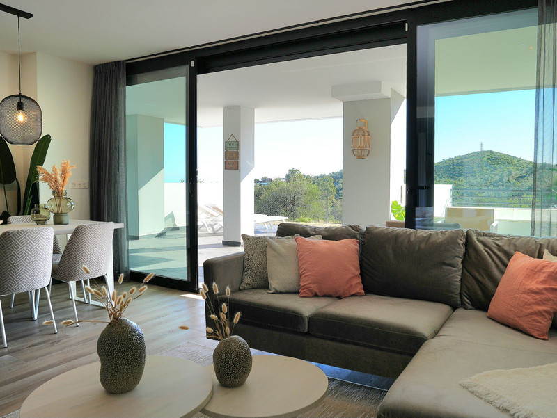 Ervaar de elegantie van dit exclusieve appartement, gebouwd in 2022 en volledig gemeubileerd, gelegen op de begane grond in een premium resort. Deze luxe woning beschikt over 4 slaapkamers, 2 badkamers en een apart gasttoilet. De ruime, lichte woonkamer gaat naadloos over in een volledig uitgeruste Amerikaanse keuken, terwijl het royale open terras van 88 m² u uitnodigt om te genieten van het adembenemende uitzicht over de zee en de omliggende bergen. Dankzij de zuidoostelijke en zuidelijke oriëntatie valt er de hele dag volop natuurlijk licht binnen.