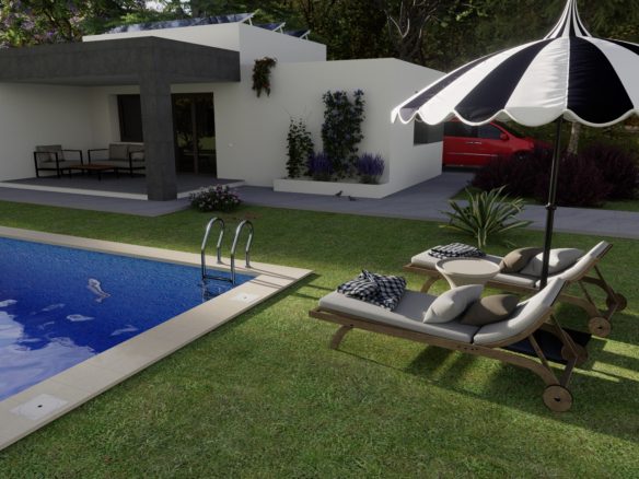 Het huis beschikt over een prachtig privézwembad van 6,00 x 4,00 meter, perfect om te ontspannen en te genieten van de zon. Het perceel is omheind en heeft een schuifpoort voor extra privacy en veiligheid.