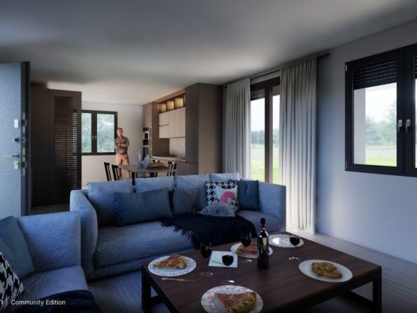 De binnenmuren zijn opgebouwd uit keramische bakstenen scheidingswanden, afgewerkt met pleisterwerk en verf. In de woning zijn hoogwaardige tegelvloeren gelegd, inclusief de plinten, die het moderne karakter van het interieur versterken. De keuken en badkamers zijn betegeld met keramische tegels van topkwaliteit, en alle muren zijn afgewerkt met pleisterwerk en verf.